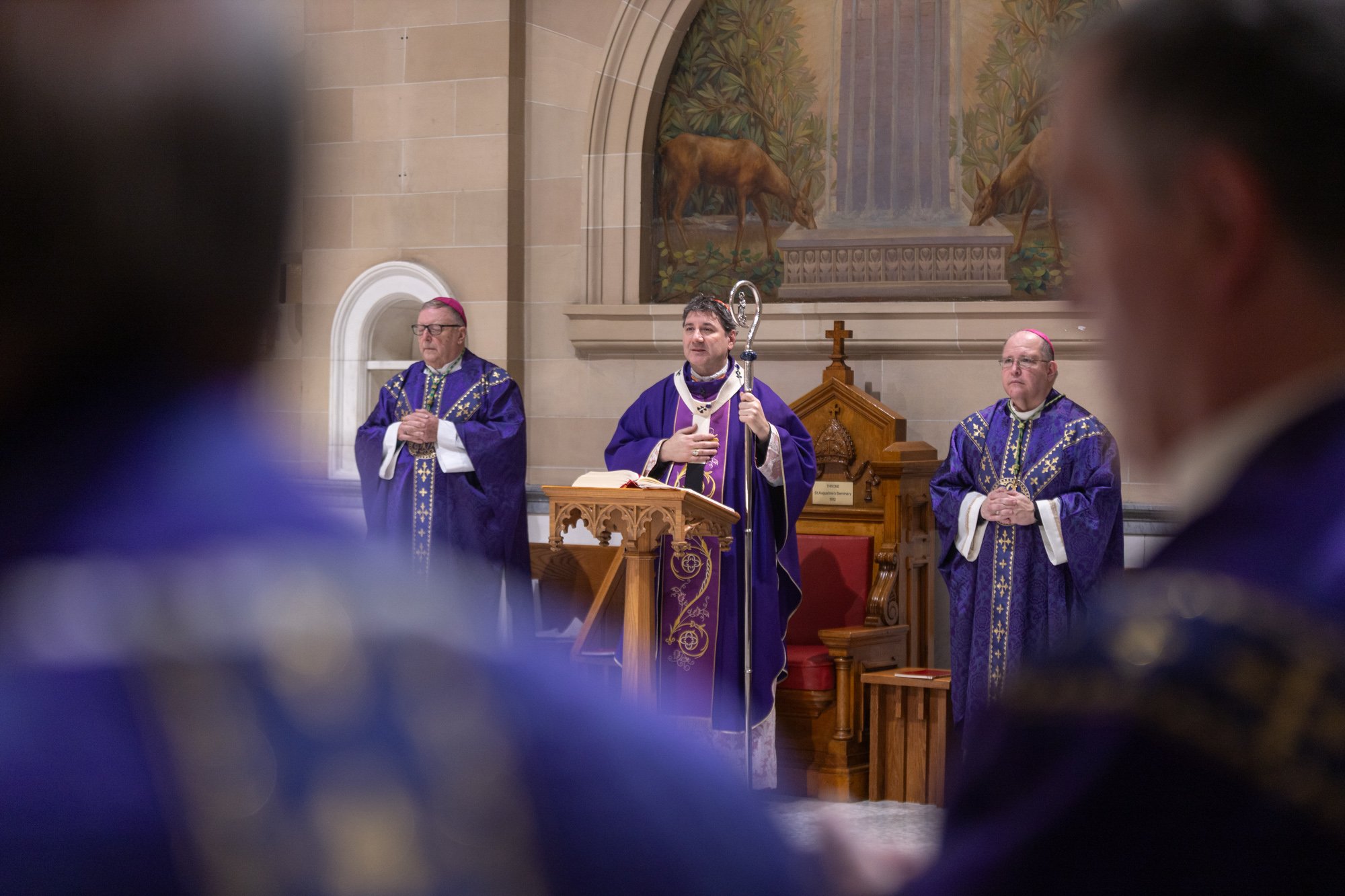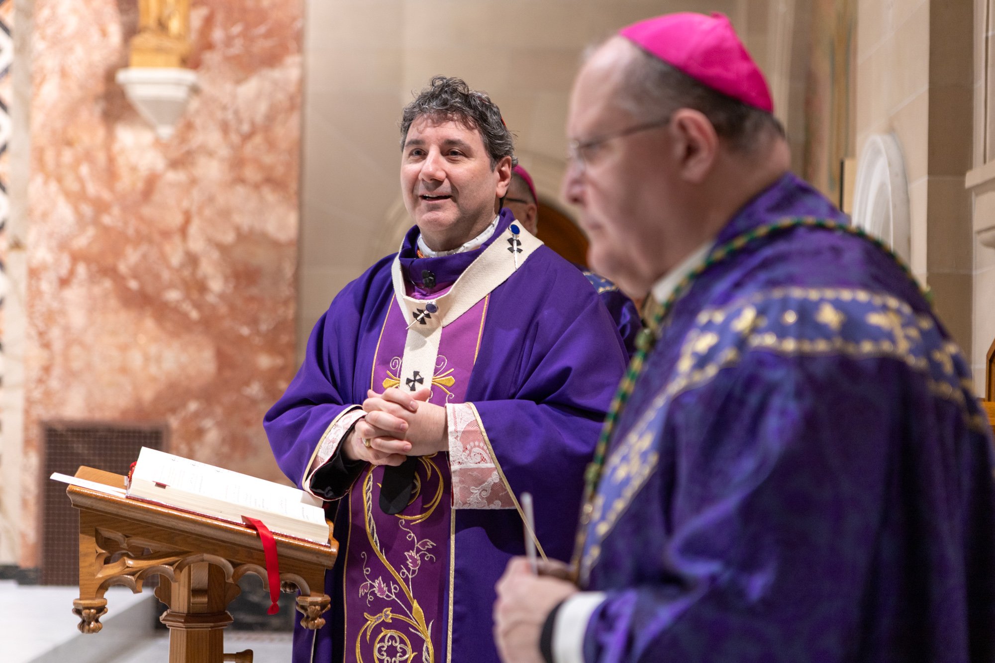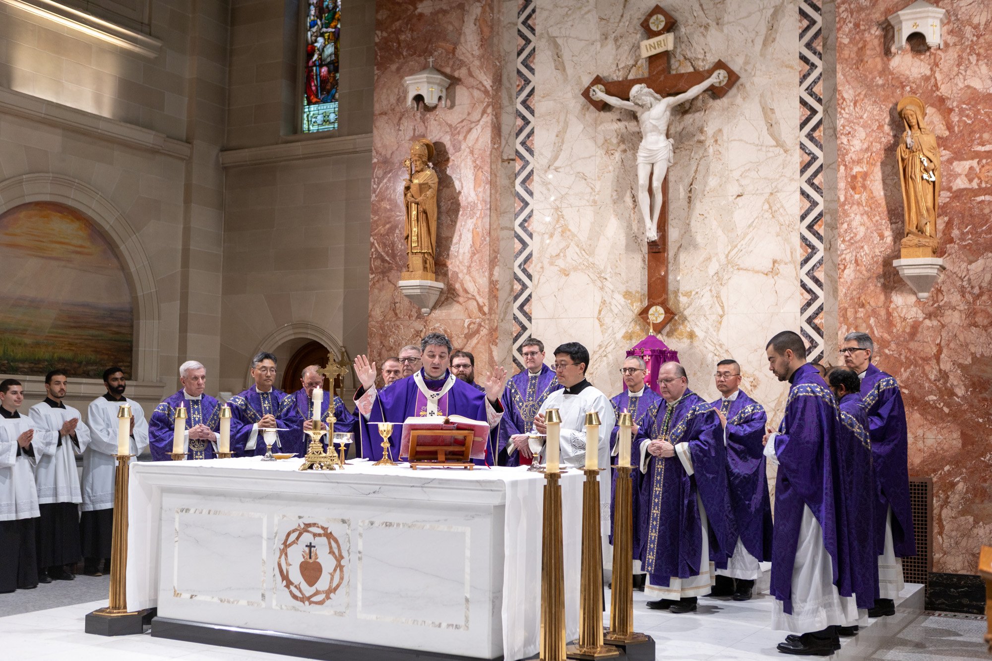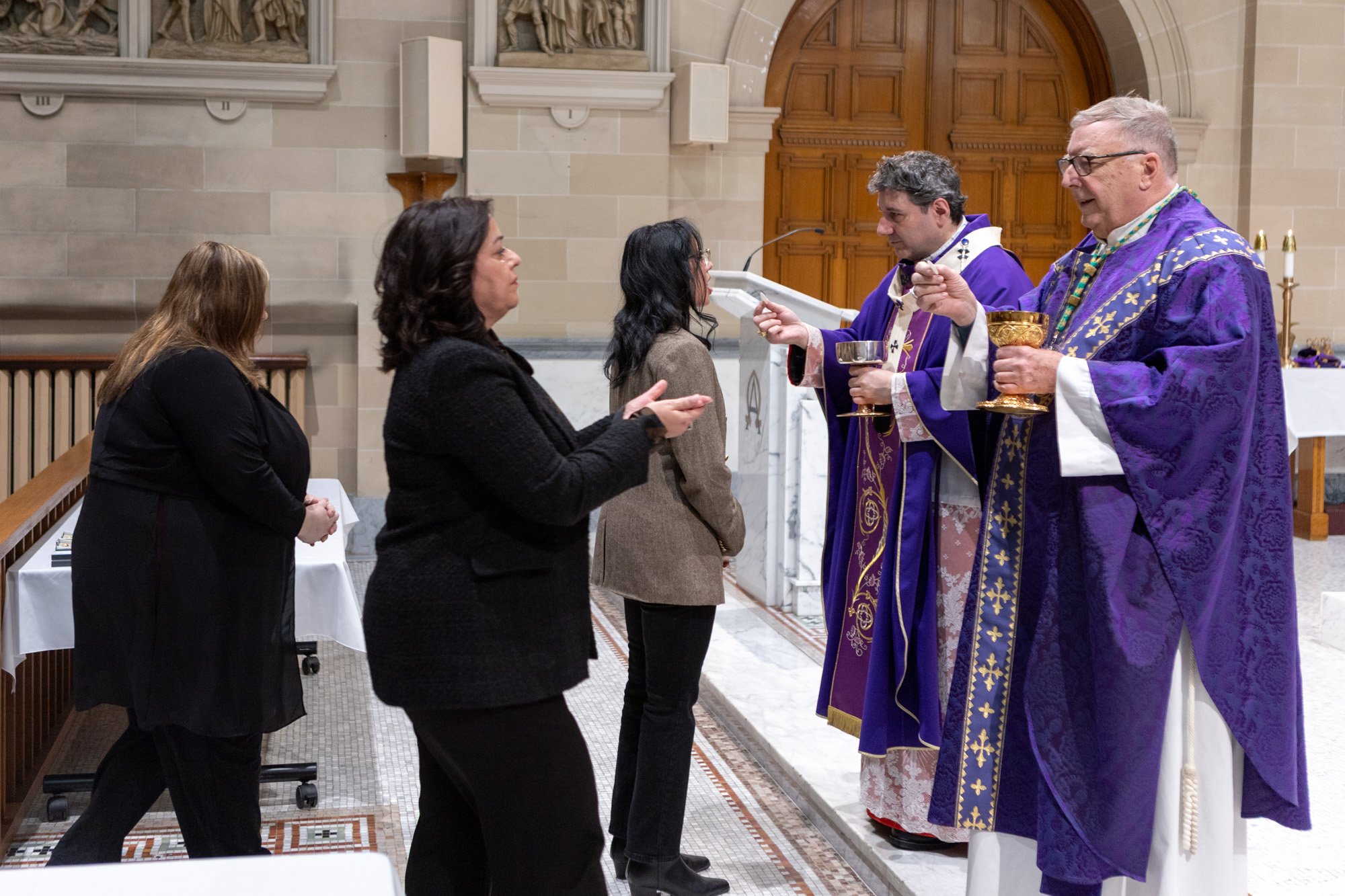 The celebration was held at the beautiful Chapel of St. Augustine’s Seminary of Toronto. Mass was celebrated by His Eminence, Frank Cardinal Leo, Metropolitan Archbishop of Toronto, joined by the Most Reverend John Boissonneau, Auxiliary Bishop of the Northern Region, the Most Reverend Ivan Camilleri, Auxiliary Bishop of the Western Region, and several priests of the Archdiocese.
